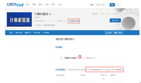 3、學生在學習后的第二天,登錄查詢自己的學習情況,課程學習總得分,學滿10分即可。